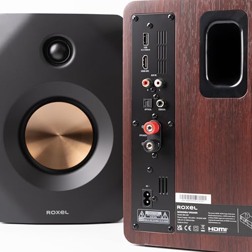Roxel Nova Active Bookshelf Speakers, 100-Watt RMS Power, Wireless BT 5.4 Streaming, HDMI ARC,Optical Input, 3-Metre Speaker Cable, Dynamic Sound for Movies, Music, Office, Home Theatre (Walnut)