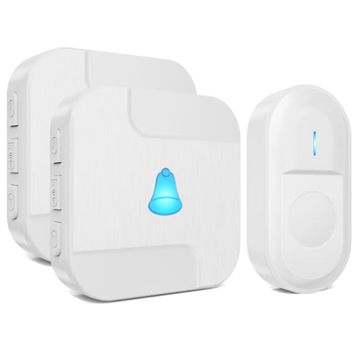 Wireless Doorbell with 2 Receiver, Waterproof Twin Wireless Doorbell Cordless Battery Operated Push Button Door Bells Chime at 1,000ft Range with 55 Chimes, 5-Level Volume, LED Light