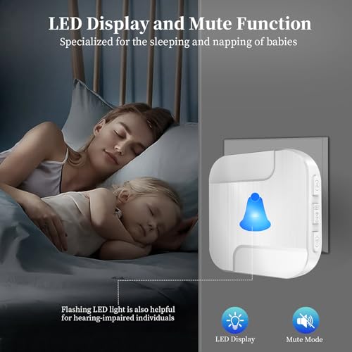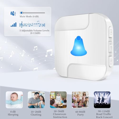 【Custom Sound, Flexible Modes】Enjoy precise control with 5 volume levels up to 110 dB, perfect for the hard of hearing or elderly. Easily switch between LED only or LED + ring modes and select from 55 melodies for personalized alerts. Your last settings are saved for uninterrupted convenience.