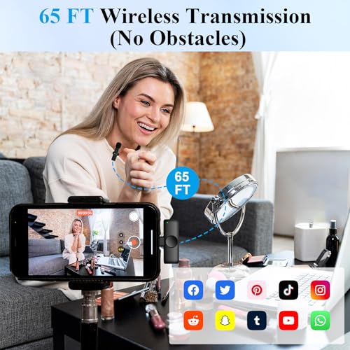 【Stable Transmission, 9H Battery Life】The microphone for iphone provide stable transmission within 65 feet under No obstacles environment. Wireless microphones is built in 60mAh rechargeable battery works up to 4.5 hours each microphones on 1.5-hour charge, two means 9 hours. The receiver is designed with a charging interface, while using the portable wireless microphone for android, you can charge your phone simultaneously. No more low battery panic.
